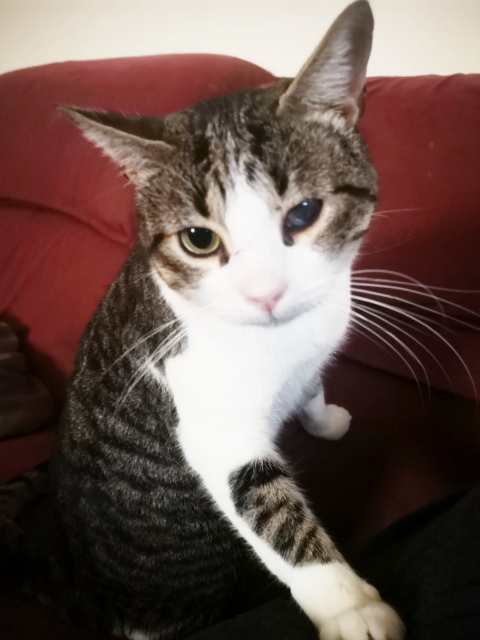 gesunder Kater. Auf einem Auge hat er eine alte Verletzung, die ihn
