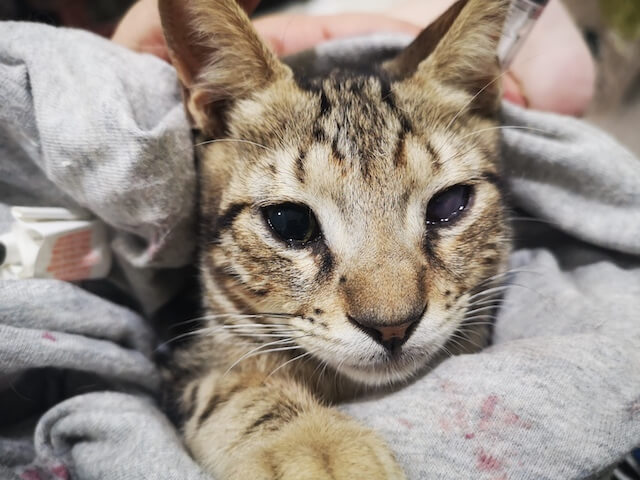 Durch seine Augenentzündung hat Once ein trübes Auge zurück