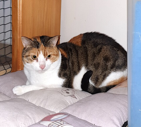 erinnert. Alma ist eine sehr anhänglich Katze, die ihren Platz auf