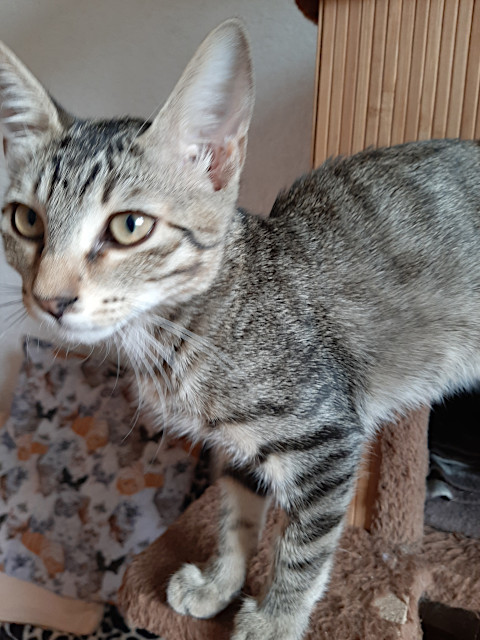 Ali ist ein hochbeiniger und schlanker kleiner Kater, der sehr viel