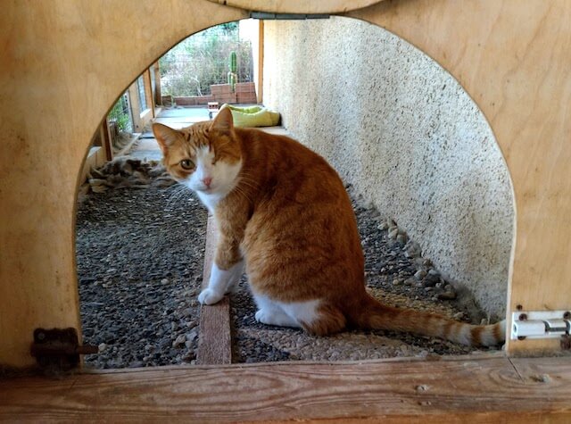 und ihnen sogar ein Freigehege gebaut. Nun können sie die Katzen