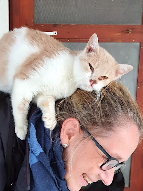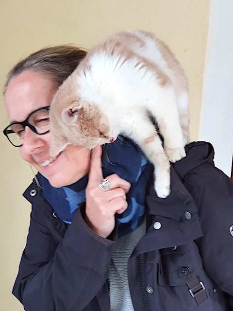 kurzerhand am Bein hochklettert und es sich auf der Schulter bequem