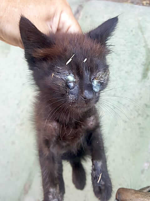 bedurfte dringend tierärztlicher Versorgung, da seine Äuglein sehr