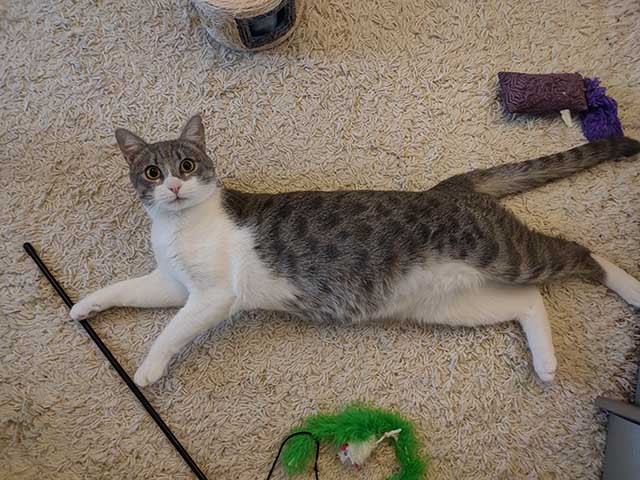 Maunzen. Und er freut sich über jedes Spielangebot, die Federangel