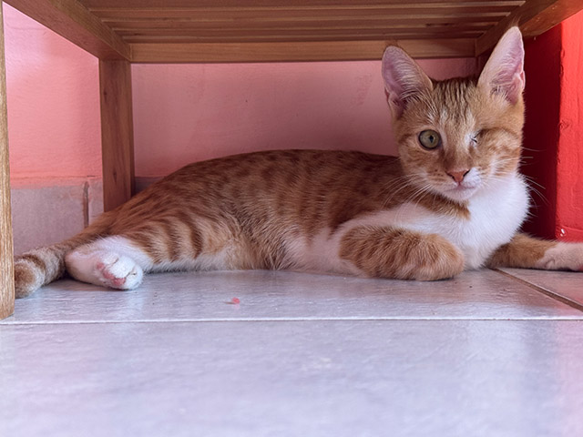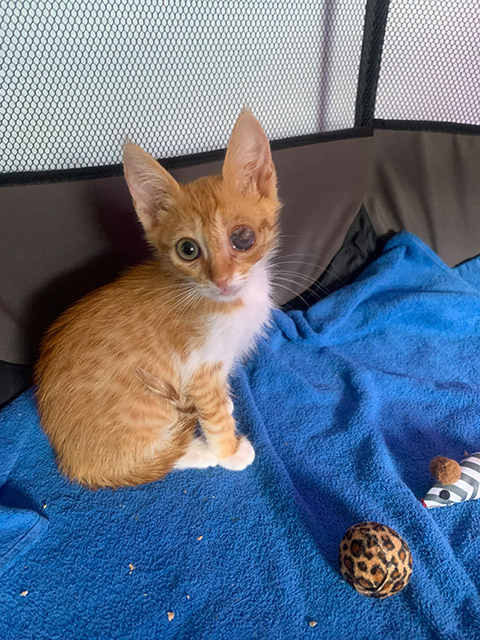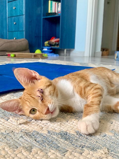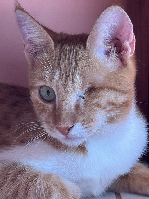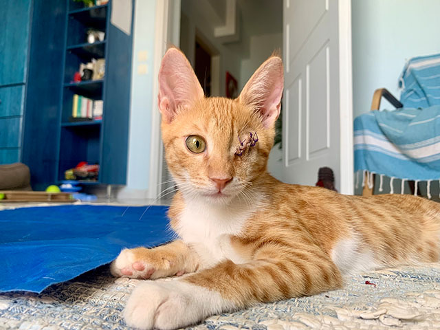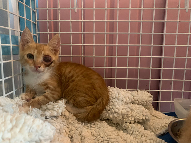 Simba hatte in beiden Augen Infektionen, die lange behandelt wurden.