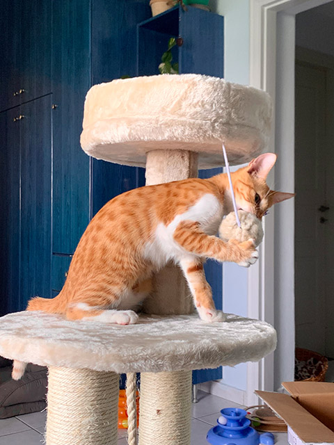 miauen, wenn ich mit ihnen spielen soll. Wenn Simba sein Spielzeug
