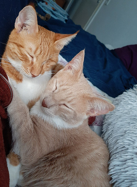 Beide kuscheln sich gern in meine Arme oder legen sich dazu, wenn ich