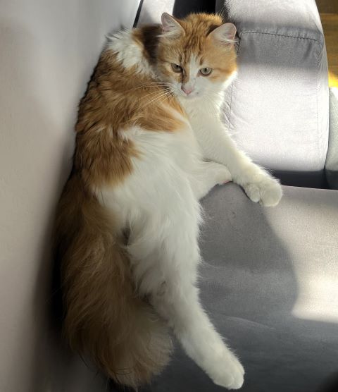 ein menschenbezogener Kater. Er liebt es, zu schmusen und schläft