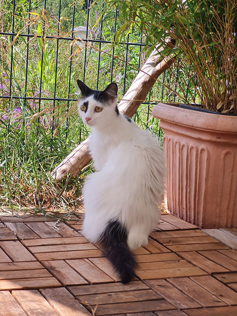 Die hübsche Langhaarmixkatze Salty mit den tollen "Kajalaugen" wurde von lieben Restaurantinhabern in Santorini