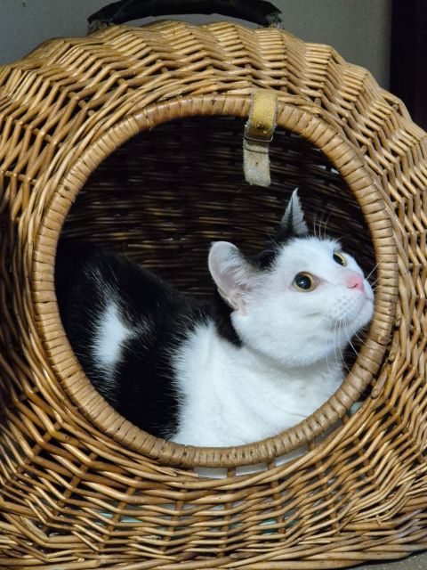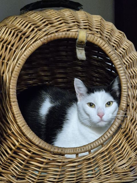 Sie ist eine ruhige, aber neugierige Katze, die gerne in einem