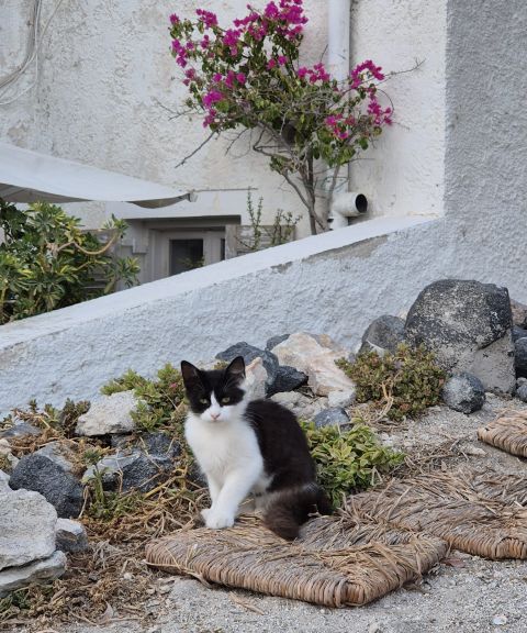 ist eine von über 20 Katzen in Santorini, deren Zukunft ungewiss