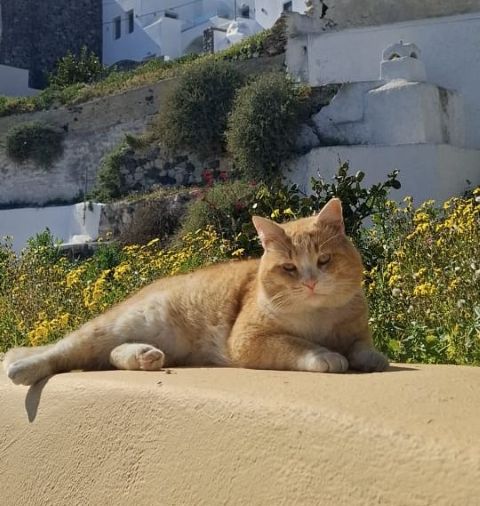 ist eine von über 20 Katzen, deren Zukunft in Santorini ungewiss