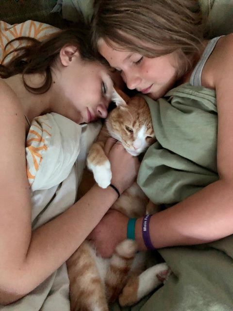 Tagsüber liegen die beiden entweder zusammengekuschelt oder