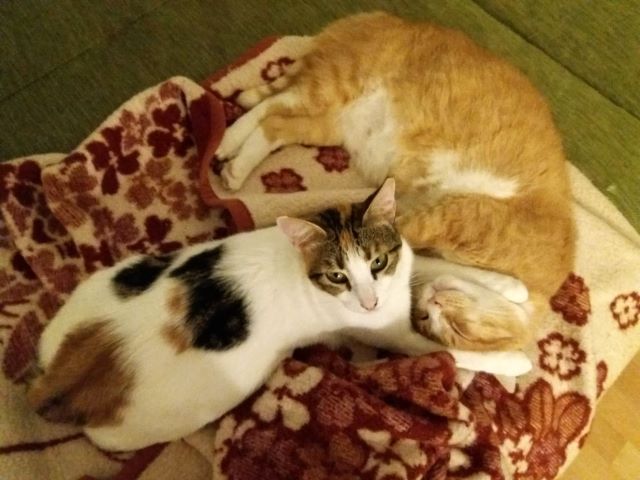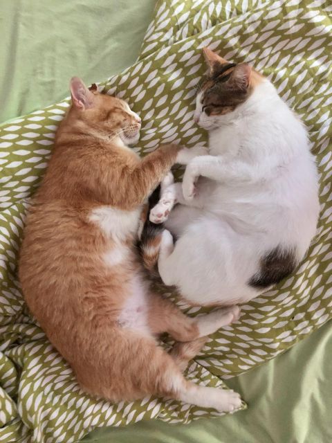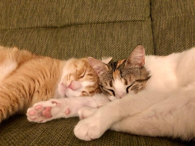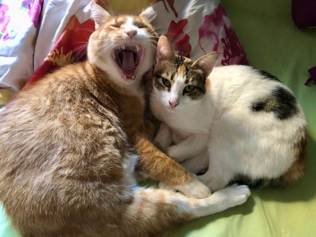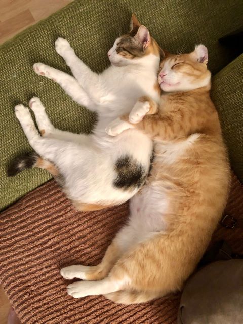 Tagsüber liegen die beiden entweder zusammengekuschelt oder