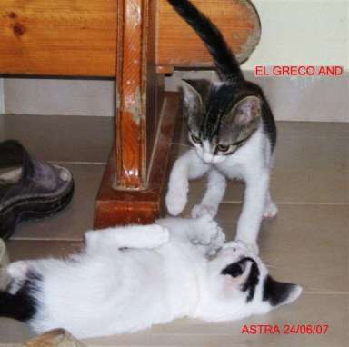 Theophilos sind ca. 8 Wochen alte Brüderchen, die bei der Tierärztin auf Santorini abgegeben wurden.
