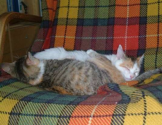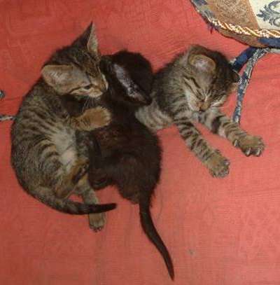 aufgepäppelt, weil sie Katzenschnupfen hatten. Der ist mittlerweile so gut wie ausgeheilt.