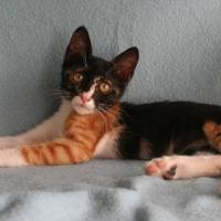 eine sehr zarte und vorsichtige Katze. Sie spielt gerne mit anderen Katzen, nur