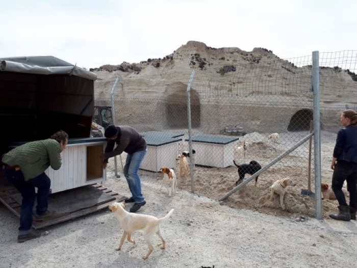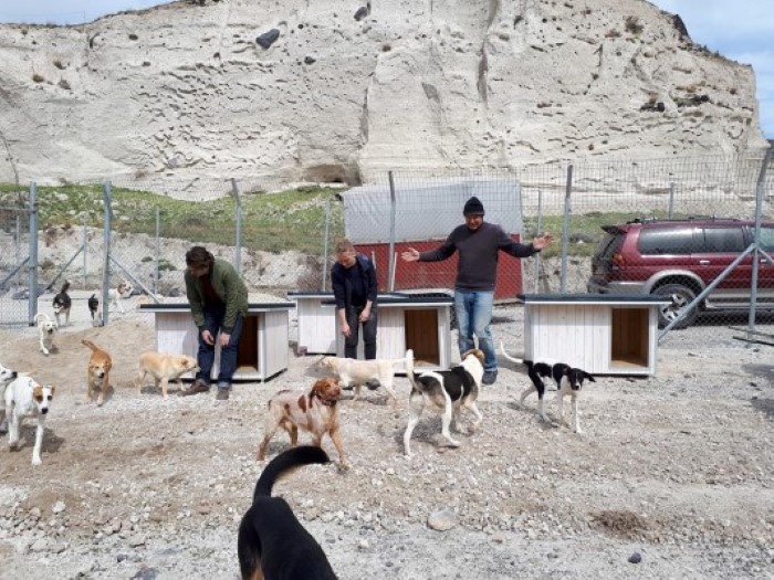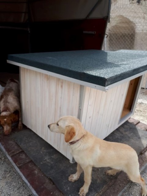 dringend neue Hundehütten. Wir brauchen sowohl wetterfeste