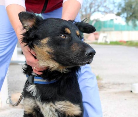 Tierheim auf Santorini. Er wurde auf der Straße gefunden und konnte