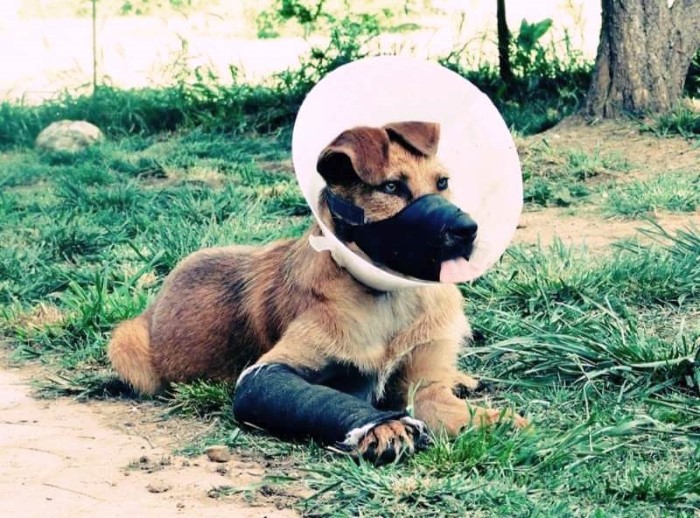 gebrochenen Unterkiefer und Vorderbein gefunden und muss unsagbar