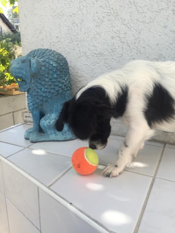 einem Bällchen, apportiert auch gerne. Futter ist ganz wichtig für ihn. Er frisst trotz Antischlingnapf