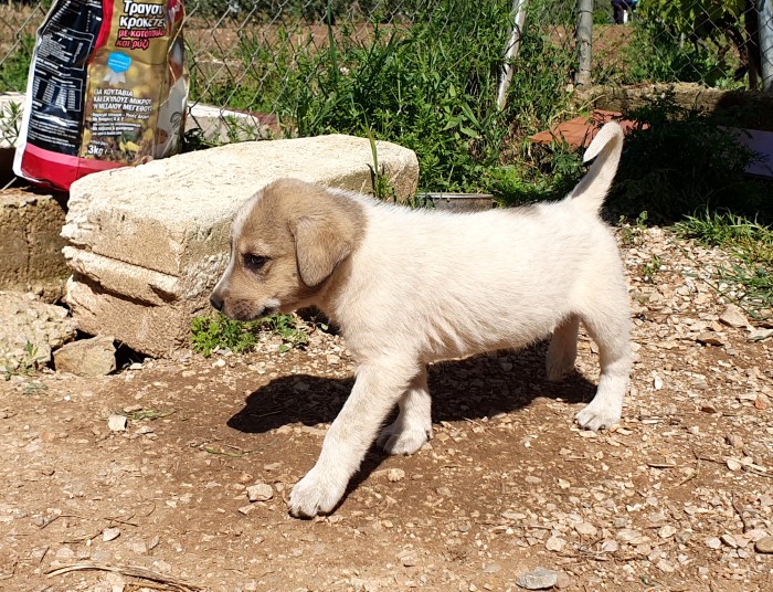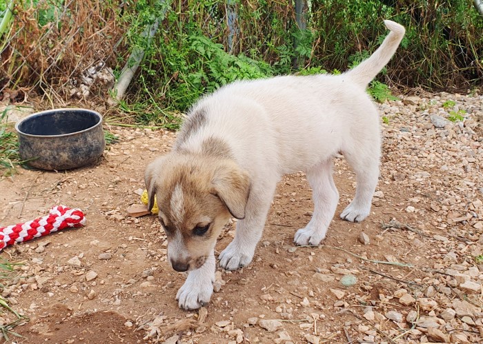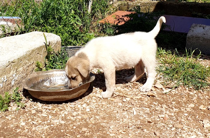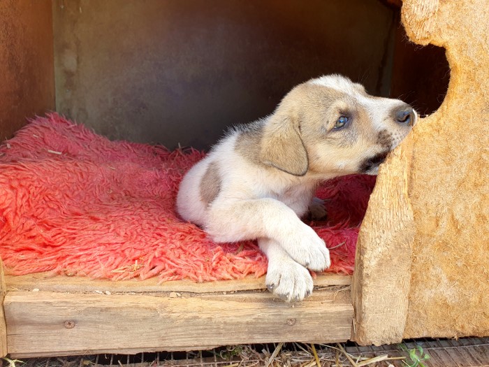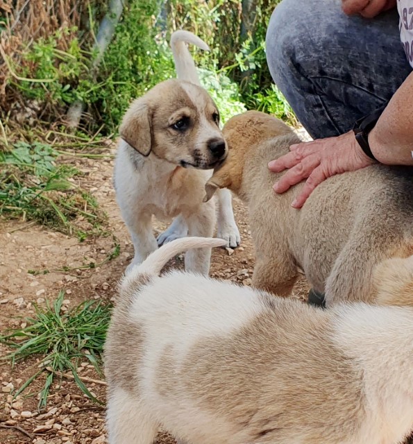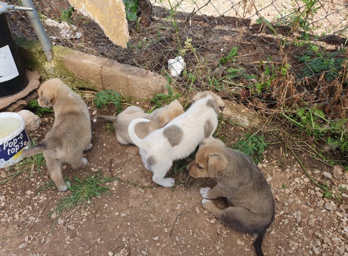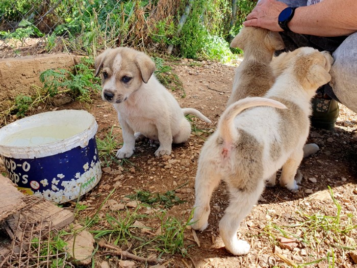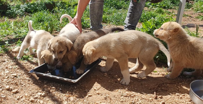 versprachen, die fünf Welpen sobald sie alt genug und reisefertig