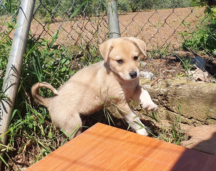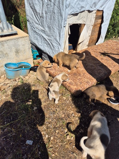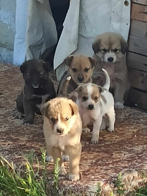 versprachen, die fünf Welpen sobald sie alt genug und reisefertig
