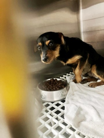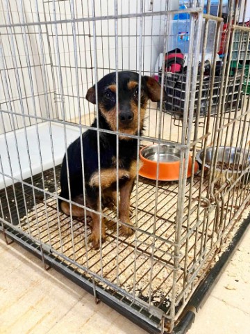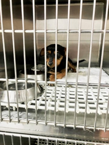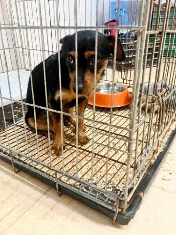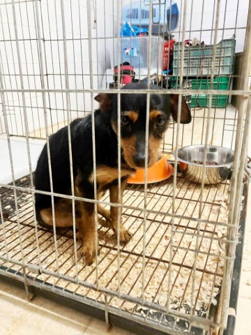 saß traurig in einem dieser schrecklichen Gitterkäfige in der Tötungsstation von Almeria
