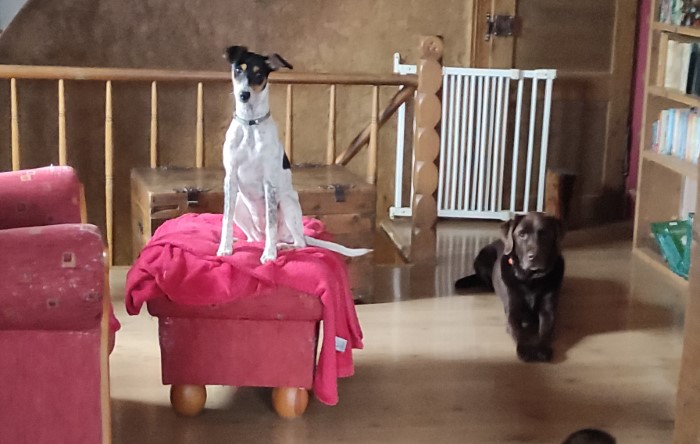 Auch mit Katzen kommt sie gut klar. Wir suchen für sie ein