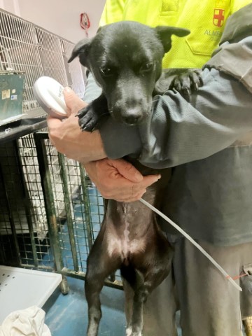 saß völlig eingeschüchtert und zitternd in der Tötungsstation von Almeria.