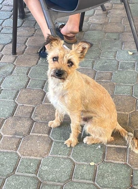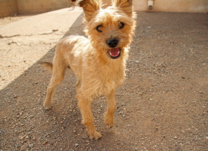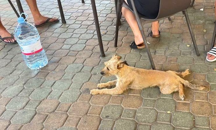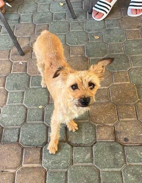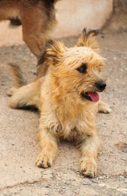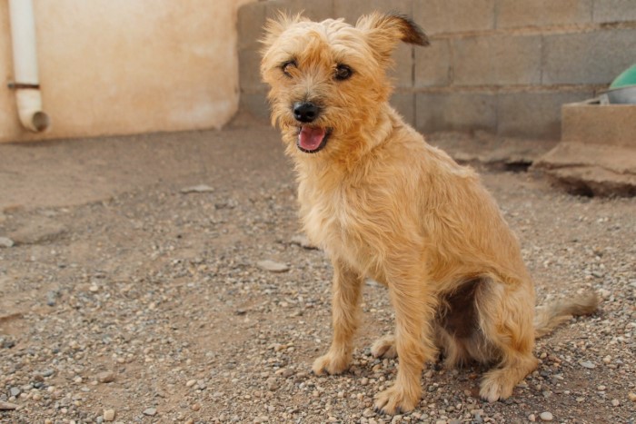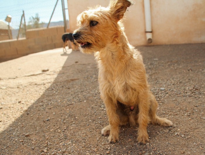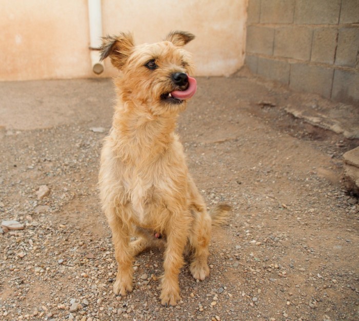 Almeria auf und bettelte um Essen. Der kleine lustige Rüde trug kein