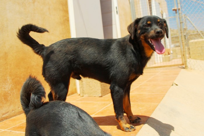sehr jung. Beide sind sehr liebe und sanfte Hunde, sie vertragen
