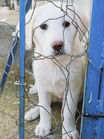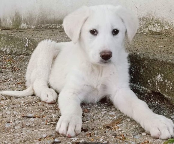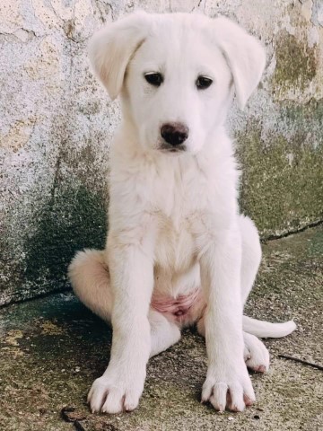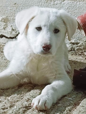 gegenüber. Sie ist eine fröhliche junge Welpin, verspielt aber nicht